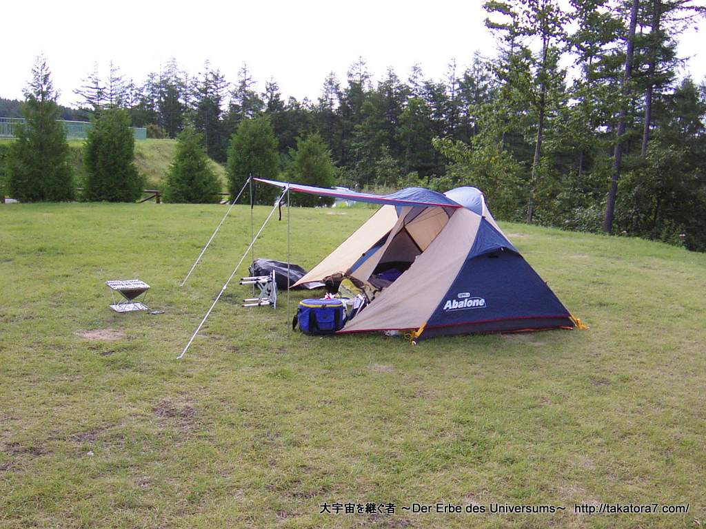 と、バイクから荷物を下ろし、テントを張り、宴会開始だ!